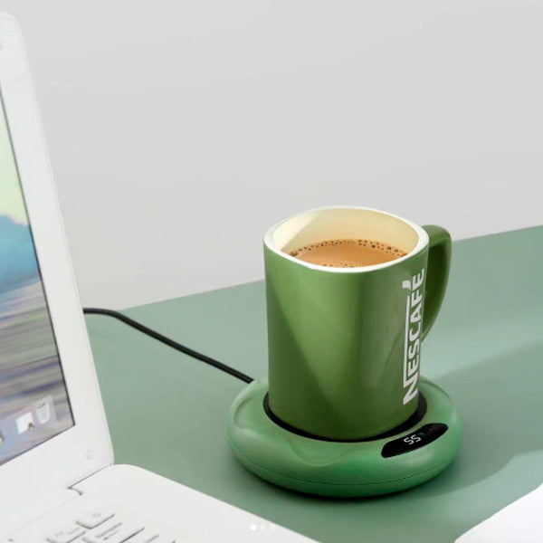 Mantén tu café siempre caliente mientras trabajas con este práctico calentador de tazas USB.